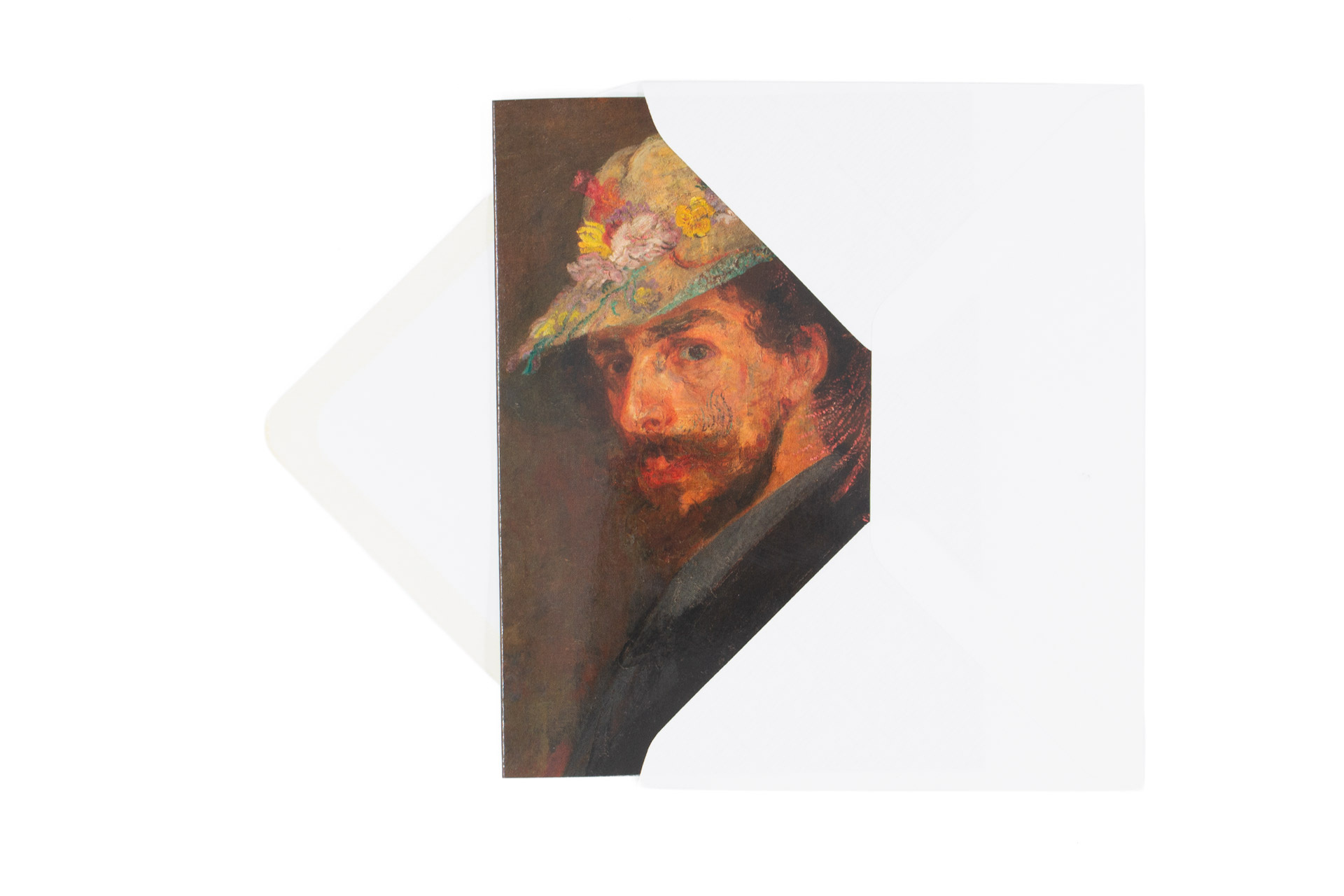 Doppelkarte mit Umschlag, James Ensor, Selbstporträt mit geblümter Kapuze