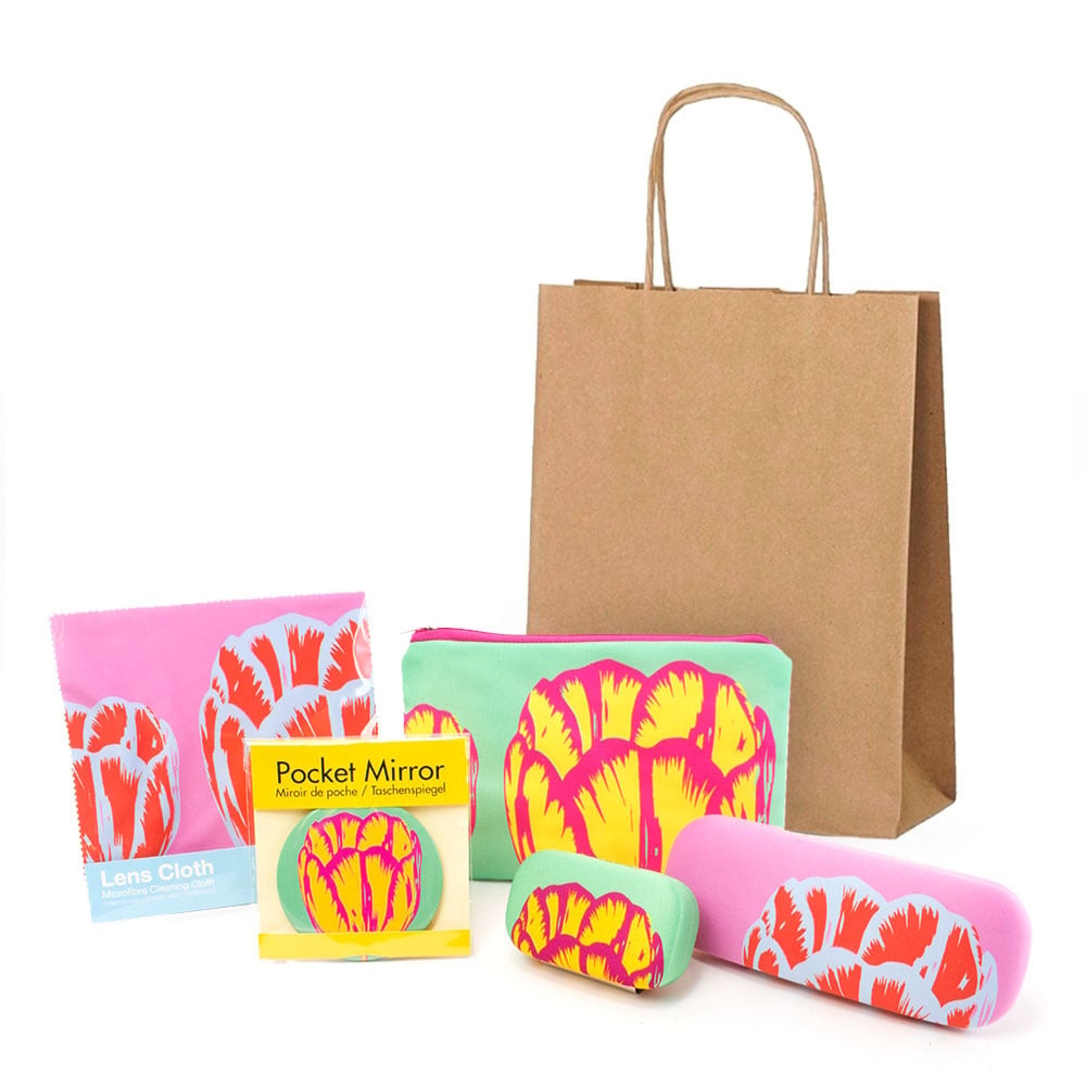 Inhalt: ALBW000009 (Lippenstiftbox) ALCW000055 (Linsentuch) AETW000011 (Kosmetikkoffer) ASBW000061 (Brillenetui) APMW000047 (Taschenspiegel)