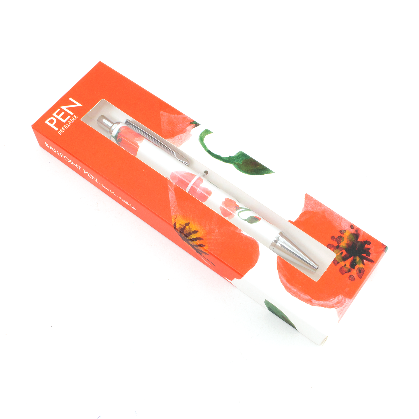 Kugelschreiber in Box, Mohnblumen