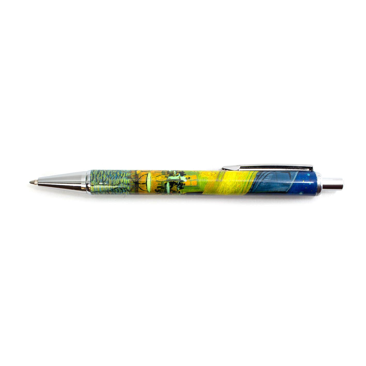 Luxuriöser Kugelschreiber mit blauer Tinte in einer schönen Geschenkbox mit dem berühmten Gemälde von Vincent van Gogh: Café-Terrasse Sammlung Kröller-Müller Museum, Otterlo, Niederlande.