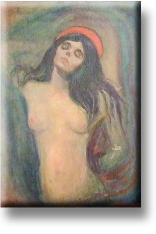 Dieser Kühlschrankmagnet haftet an Ihrem Kühlschrank, Whiteboard und jeder anderen Oberfläche, die Eisen, Nickel oder Kobalt enthält. Dieser Magnet zeigt ein Bild eines der bekanntesten Werke des norwegischen Malers Edvard Munch (1863 - 1944); Madonna, hergestellt im Jahre 1894.