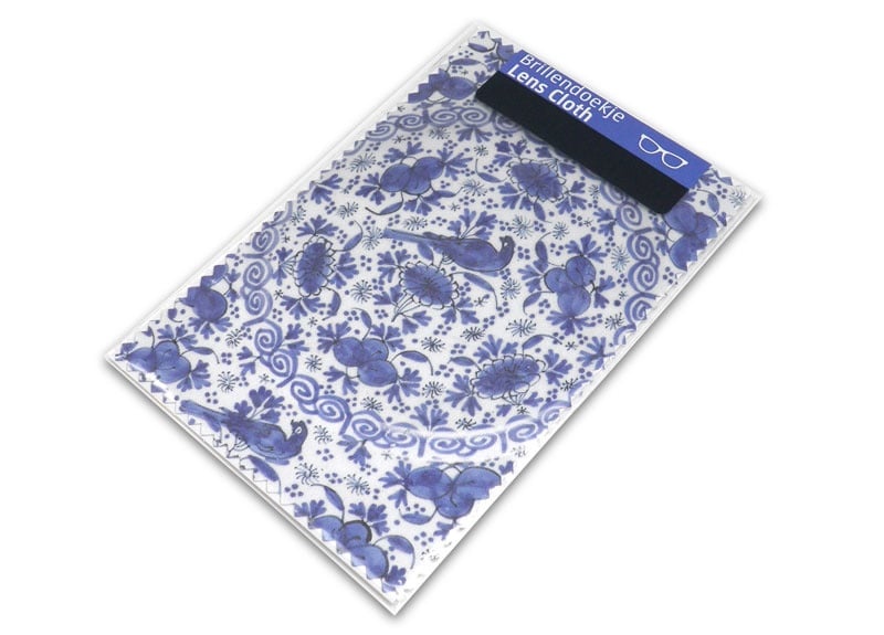 Brillenputztuch , 10 x 15 cm, Delfter Blau, Fayence-Platte