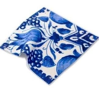 Brillenputztuch , 15 x 15 cm, Delfter Blau, Tulpen