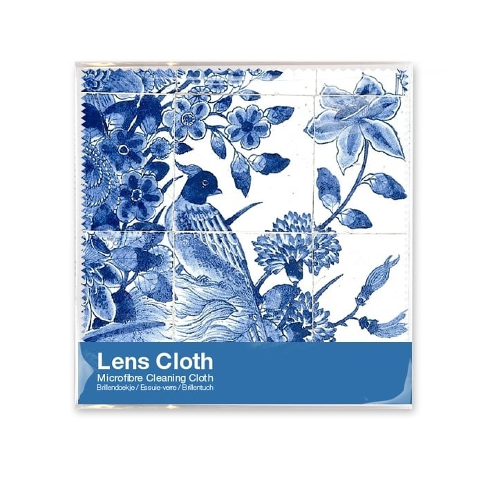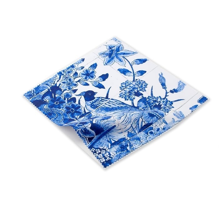 Brillenputztuch , 15 x 15 cm, Delfter Blau, Vögel