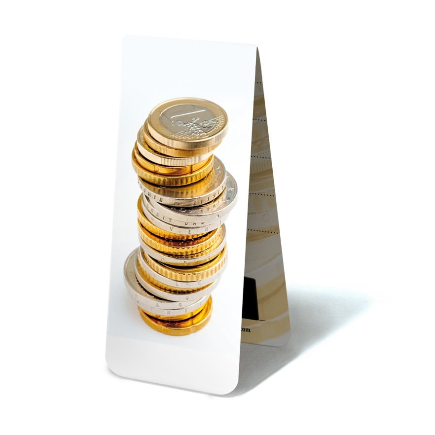 Magnetisches Lesezeichen, gestapelte Euro-Münzen