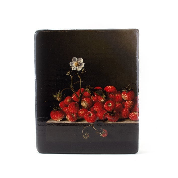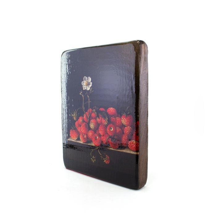 Meister auf Holz, Coorte, Erdbeeren mit Blume, 240 x 195 mm