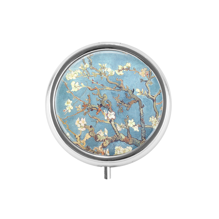 Pillendose, Silberfarbe, Van Gogh, Mandelblüte