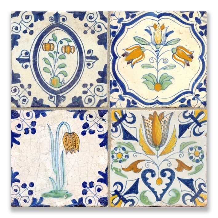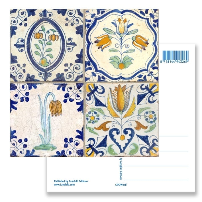 Postkarte, Delfter blaue Fliesen Tableau Blumen