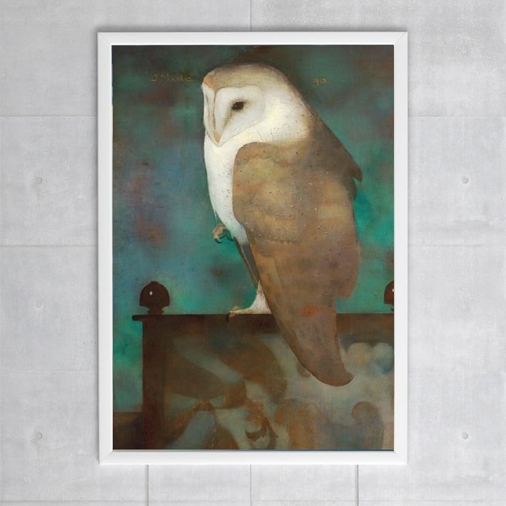 Poster, 50 x 70, Große Eule auf dem schirm, Jan Mankes