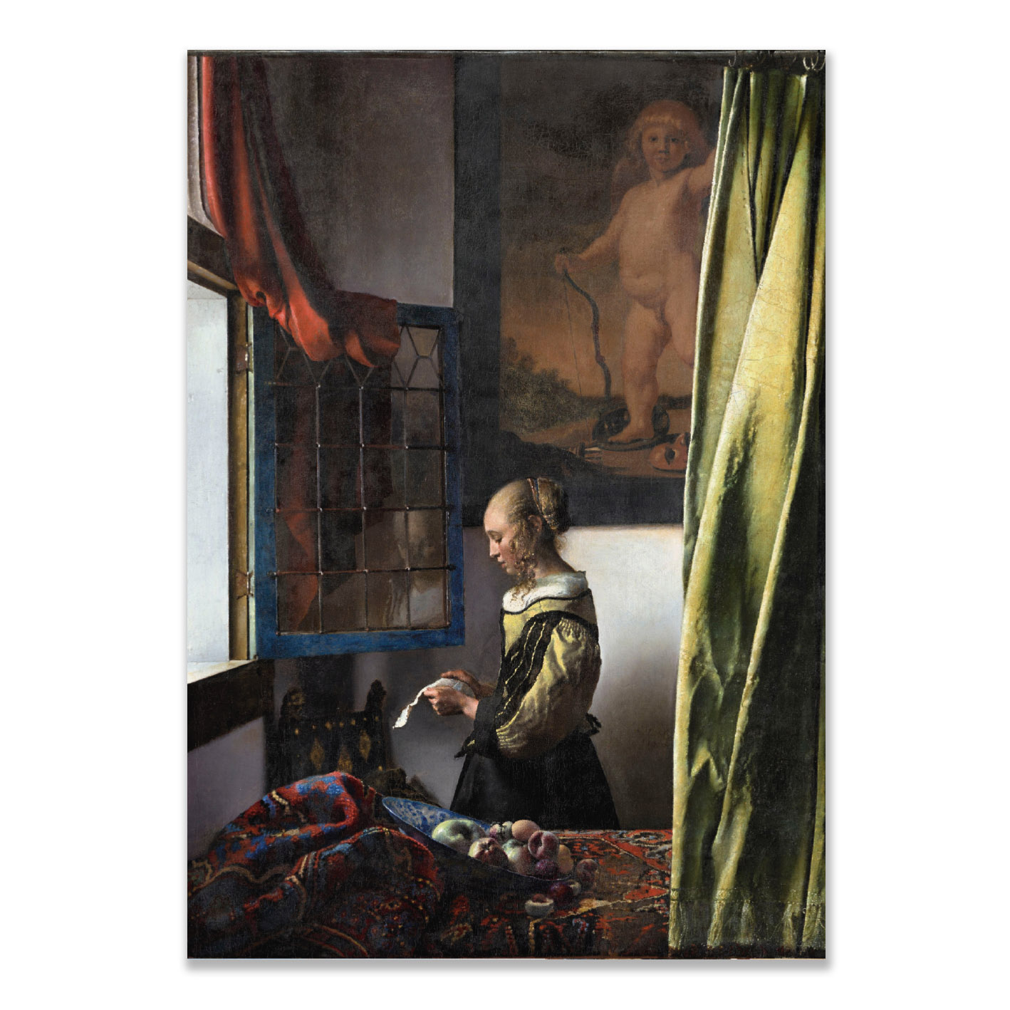 Postkarte, 10 x 15 cm, Brieflesendes Mädchen am offenen Fenster
