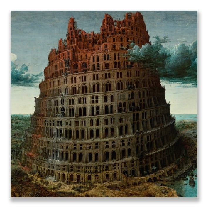 Postcard, square, Tower of Babel painted by Breughel (Brueghel).