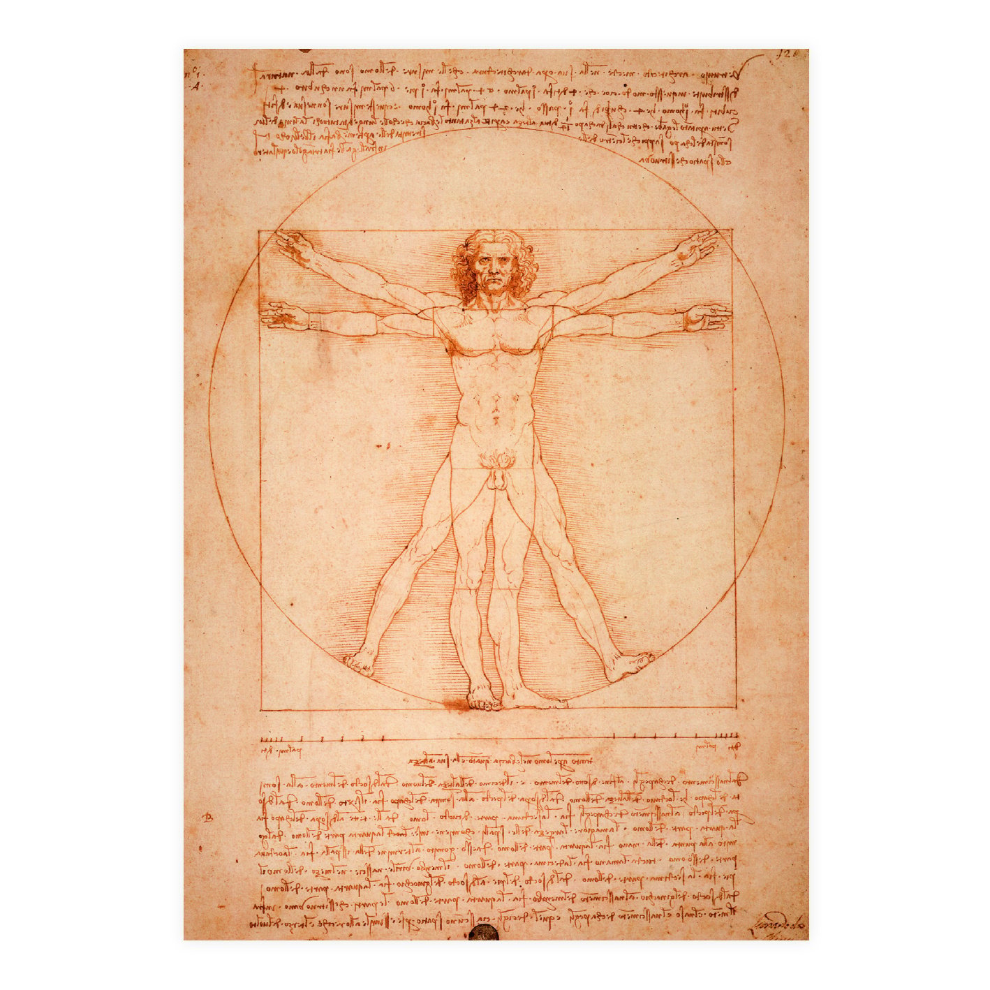 Diese Postkarte hat einen Qualitätsdruck von Leonardo Da Vincis berühmter Zeichnung: dem vitruvianischen Mann.