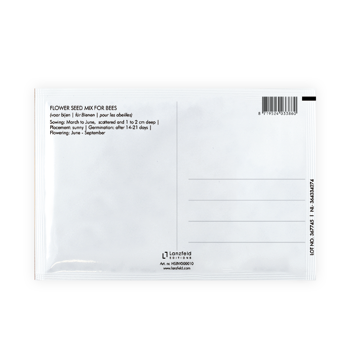 Postkarte mit Samen aller Arten von schönen Blumen, die Bienen anziehen: Bienenmischung. Ein schönes umweltfreundliches Geschenk. Ein Geschenk mit grüner Note!