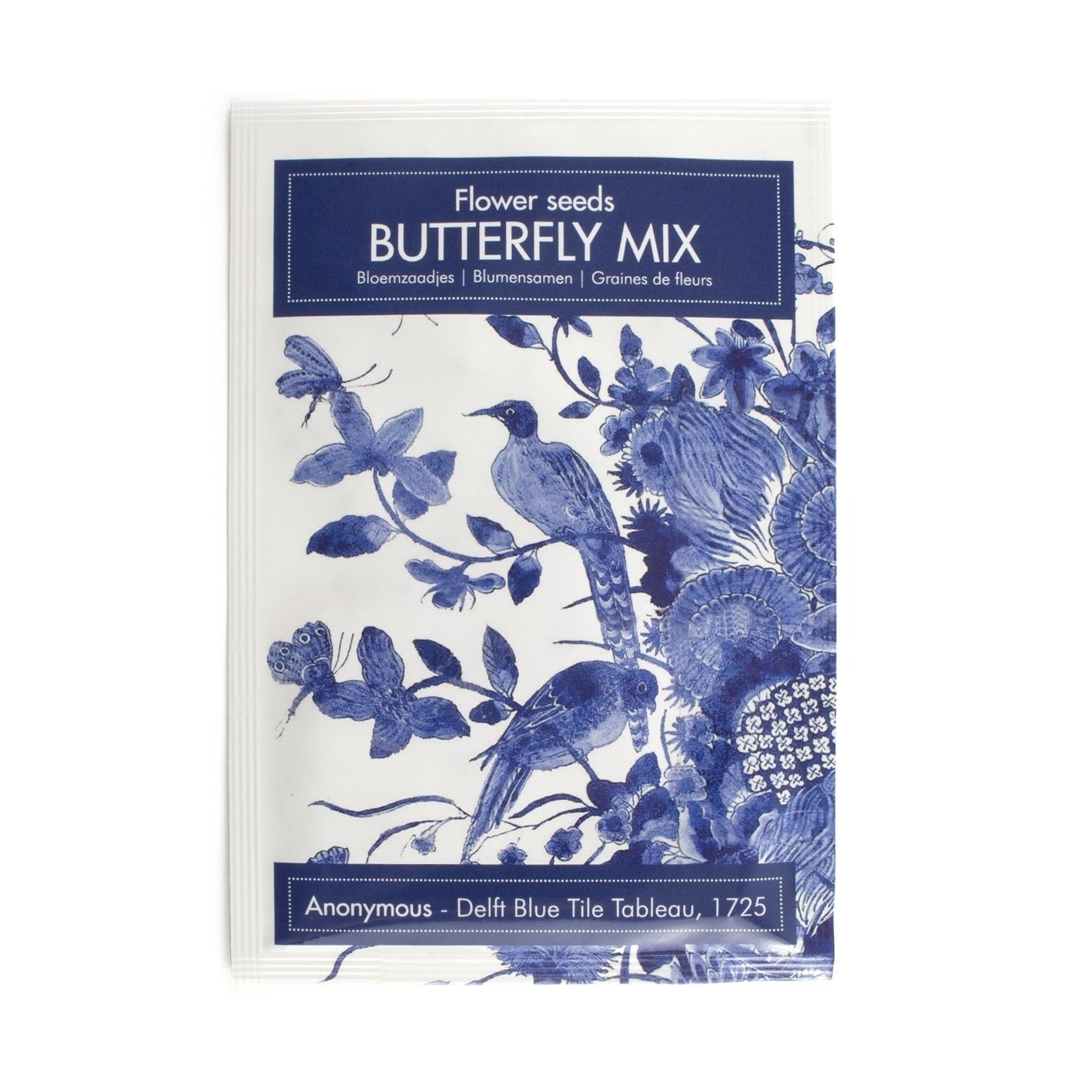 Postkarte mit Schmetterlingsmischungssamen, Delfter blaue Vögel