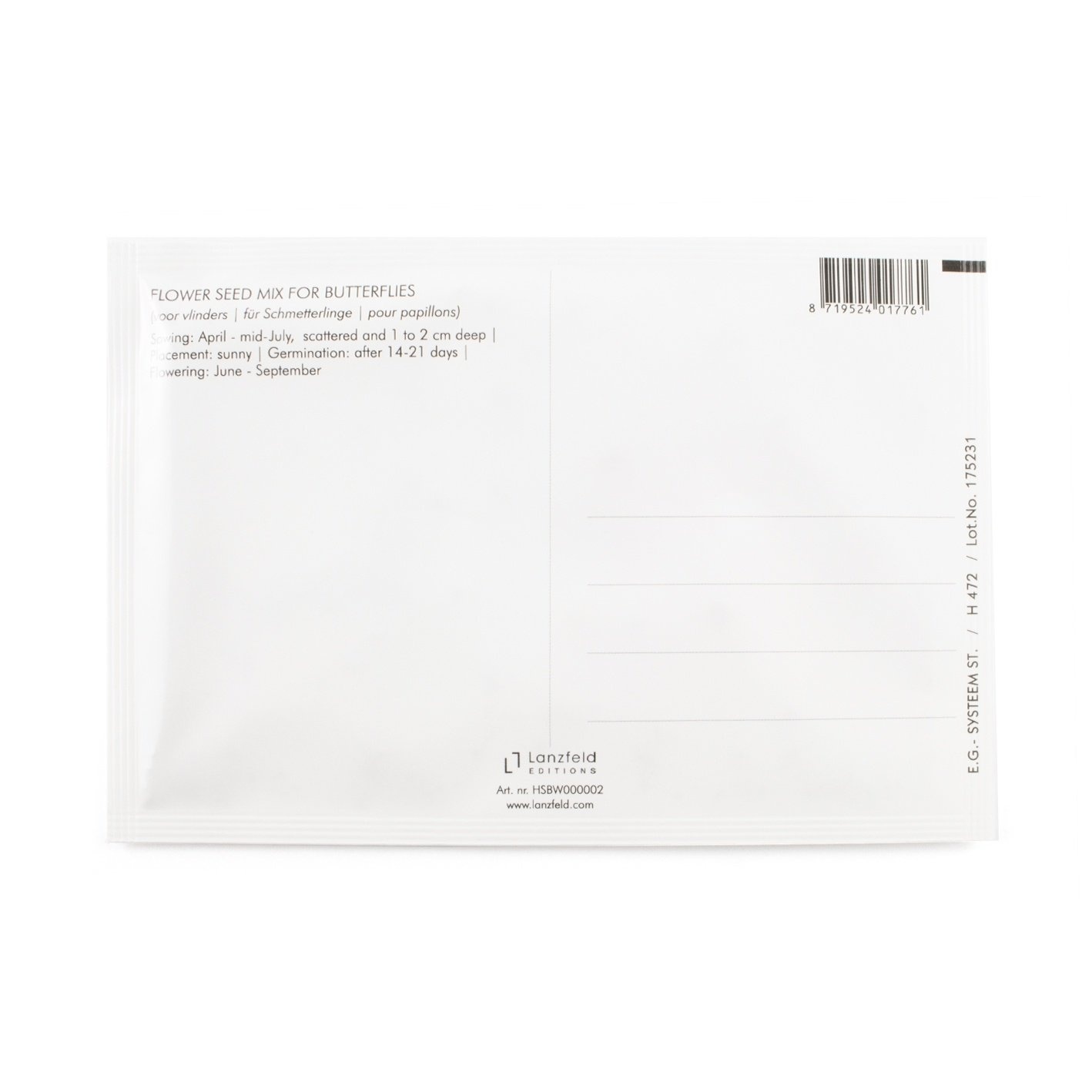 Schmetterlingsmischung: Samen für schöne Blumen in einer schönen Tasche, die Sie als Postkarte verschicken können.
