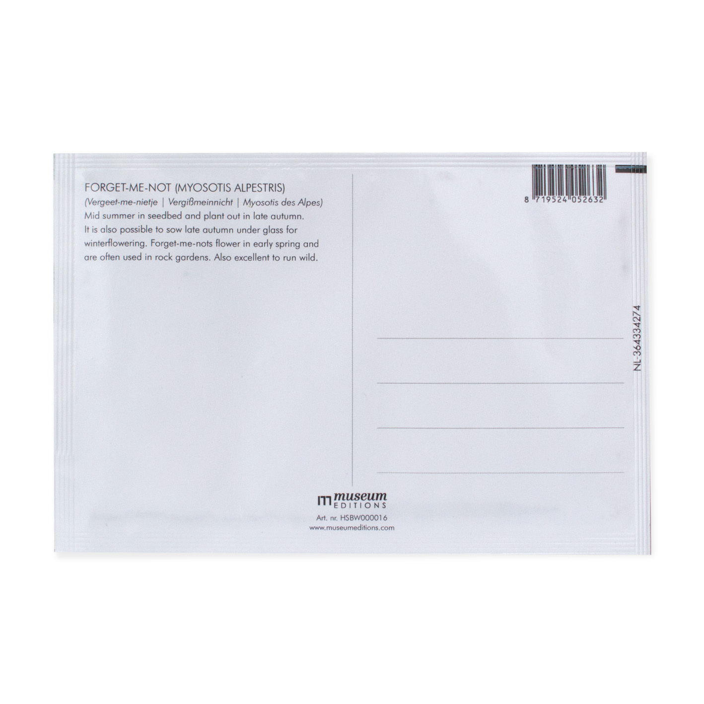 Samen für Vergeet-me-nietjes in einer schönen Tasche, die Sie als Postkarte verschicken können.