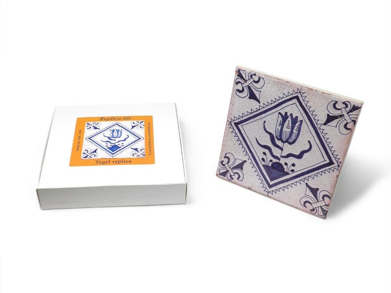 Replikfliese, Delfter Blau, Vierfach-Tulpe 13 x13 cm