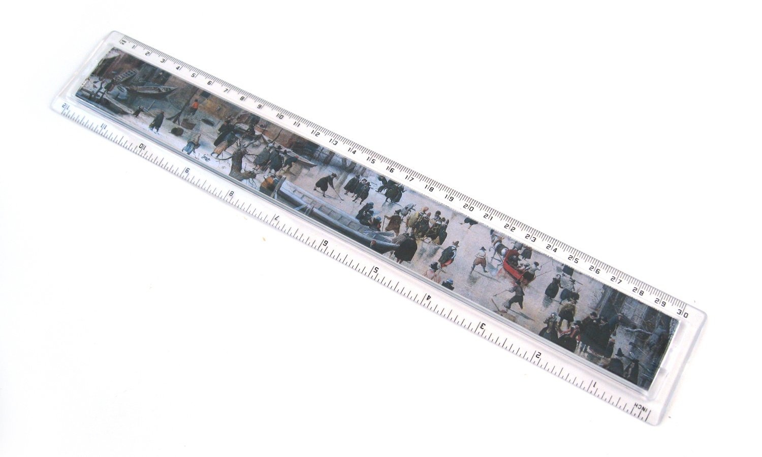 Lineal, Winterlandschaft, Hendrick Avercamp (1585-1634). Größen in Zentimetern und Zoll: 30 cm und 12 Zoll.