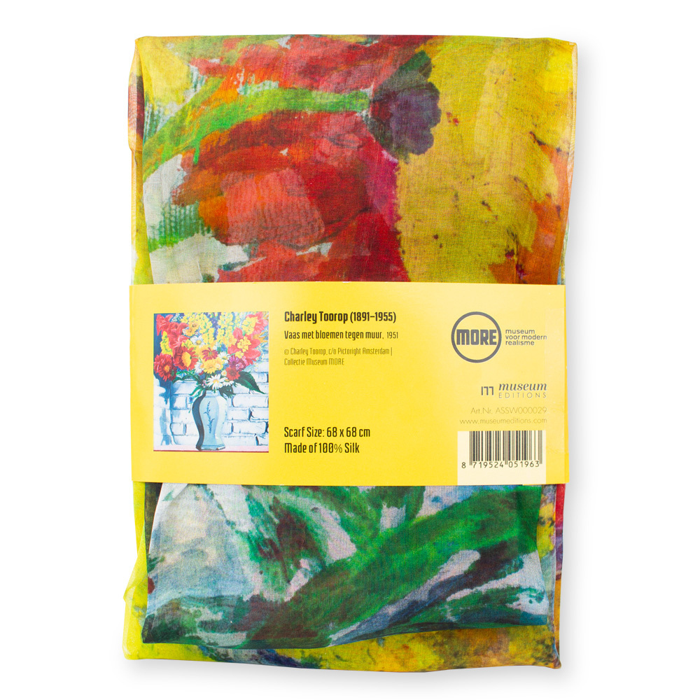 Schal aus Seidenchiffon, 68x68 cm, Charley Toorop, Vase mit Blumen an der Wand