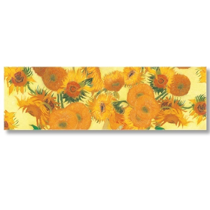 Dieser schöne Schal ist mit einem Druck von Der Sonnenblumen, einem Gemälde von Vincent van Gogh, gestaltet. Der Schal besteht aus Kunstseide (100% Polyester). Der Schal ist angenehm zu tragen und fällt gut. Der Schal kann kalt von Hand gewaschen werden.