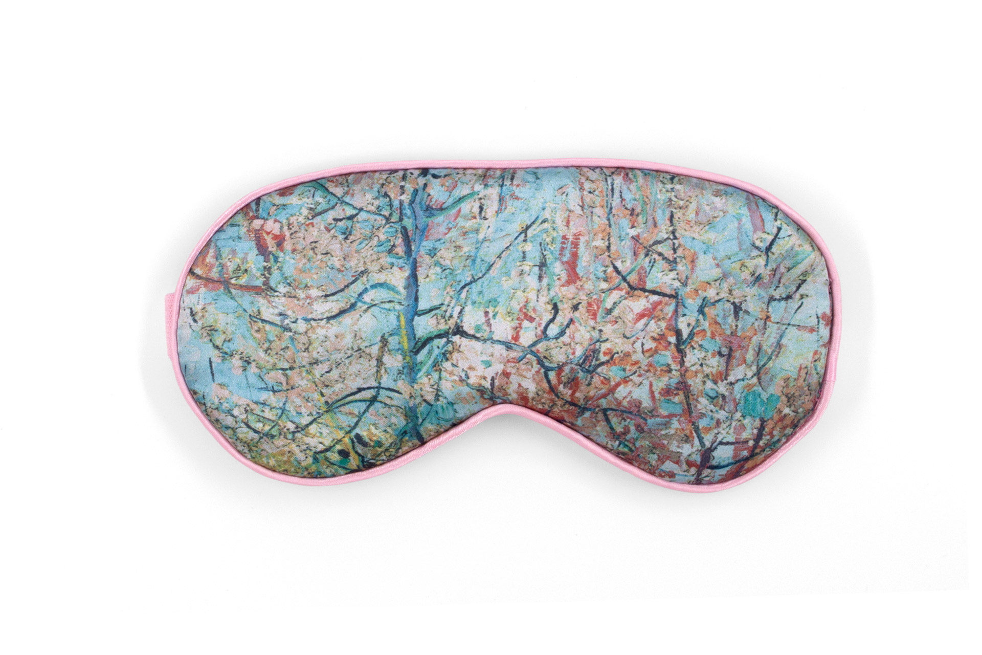 Verdunkelungs-Augenmaske mit Van Gogh-Pfirsichblüte – verstellbares Kopfband und weiche Polsterung für optimalen Schlaf: ein Bild von Vincent van Goghs Gemälde 'Pfirsichblüte ' aus der Sammlung des Kröller-Müller Museums zeigen