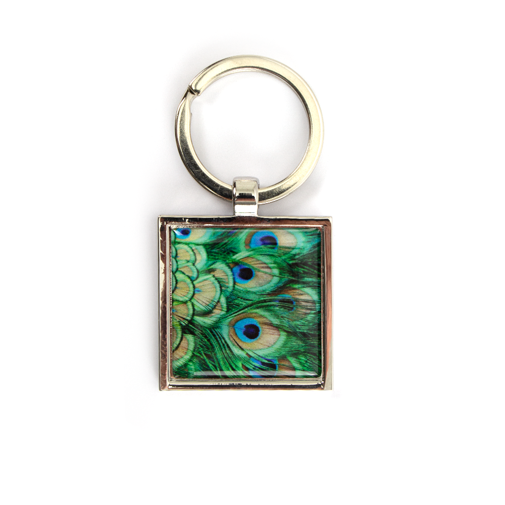Schlüsselanhänger, Goldmetall, Pfauenfedern