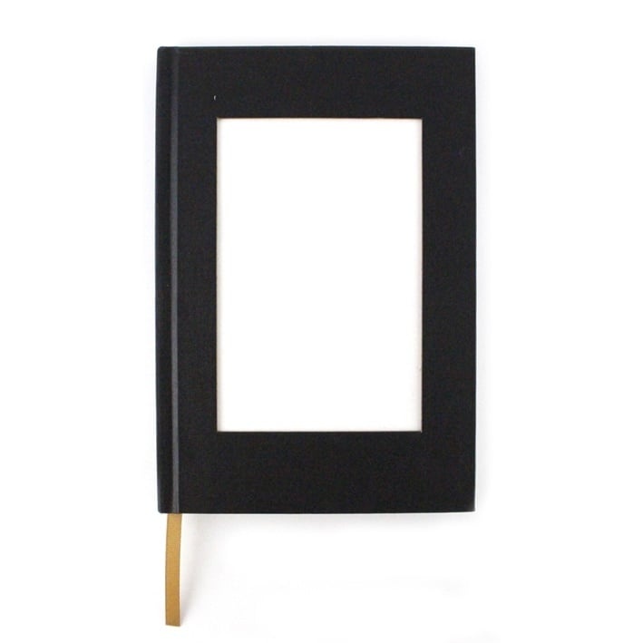 SCHWARZES Notizbuch mit Einlage für Postkarte, vertikal