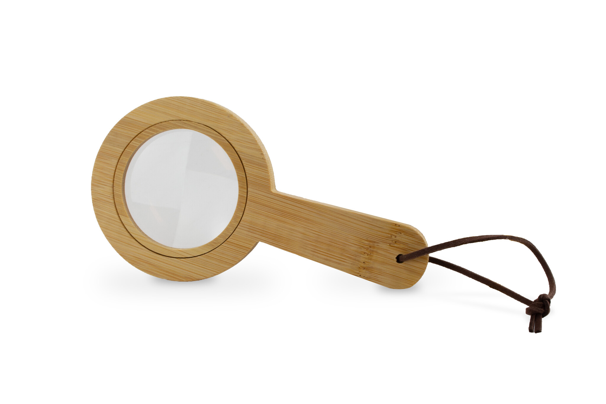 Ein optisches Spielzeug aus Holz, eine Lupe. Kinderspielzeug. Ein schönes Geschenk für neugierige Kinder. Und eine Bereicherung für jeden Museumsshop.