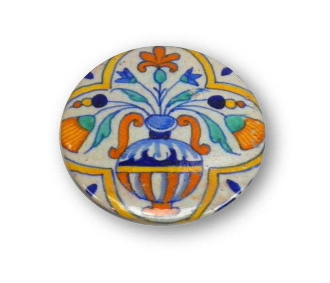 Taschenspiegel, Ø 60 mm, Delfter blaue Vase mit Blumen