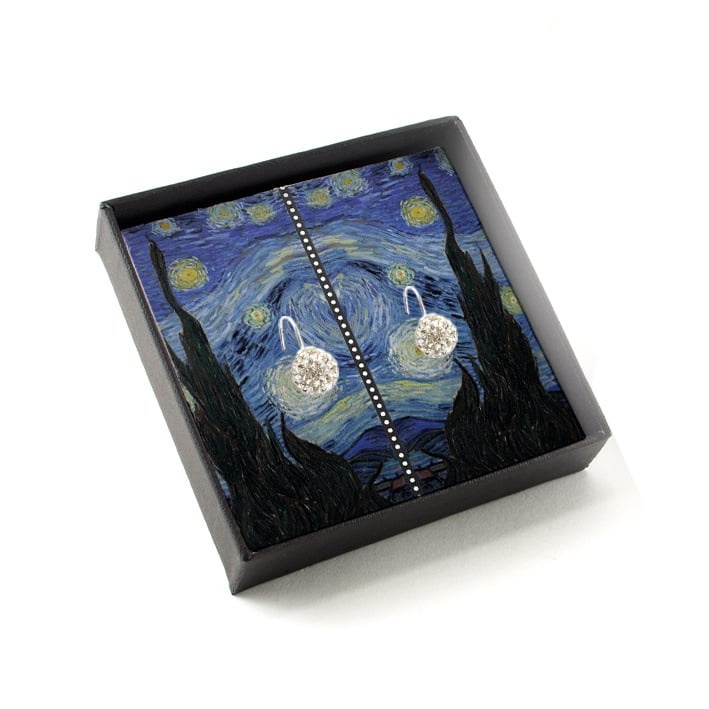 Versilberte Ohrringe mit glitzernden Kristallsteinen, Van Gogh, Sternennacht