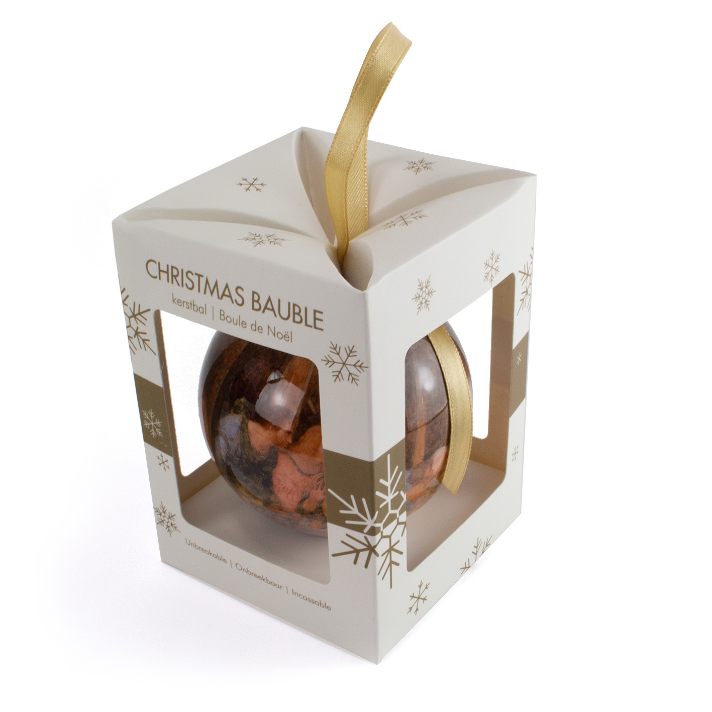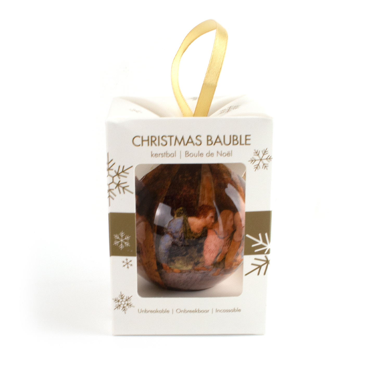 Eine schöne Weihnachtskugel in einer schönen Geschenkbox. Ein schönes Geschenk für die Feiertage und/oder eine schöne Ergänzung für den Museumsshop. Der Durchmesser beträgt 7 cm. Die Kugel kann nicht zerbrechen, wenn sie vom Baum fällt! Diese Kugel hat