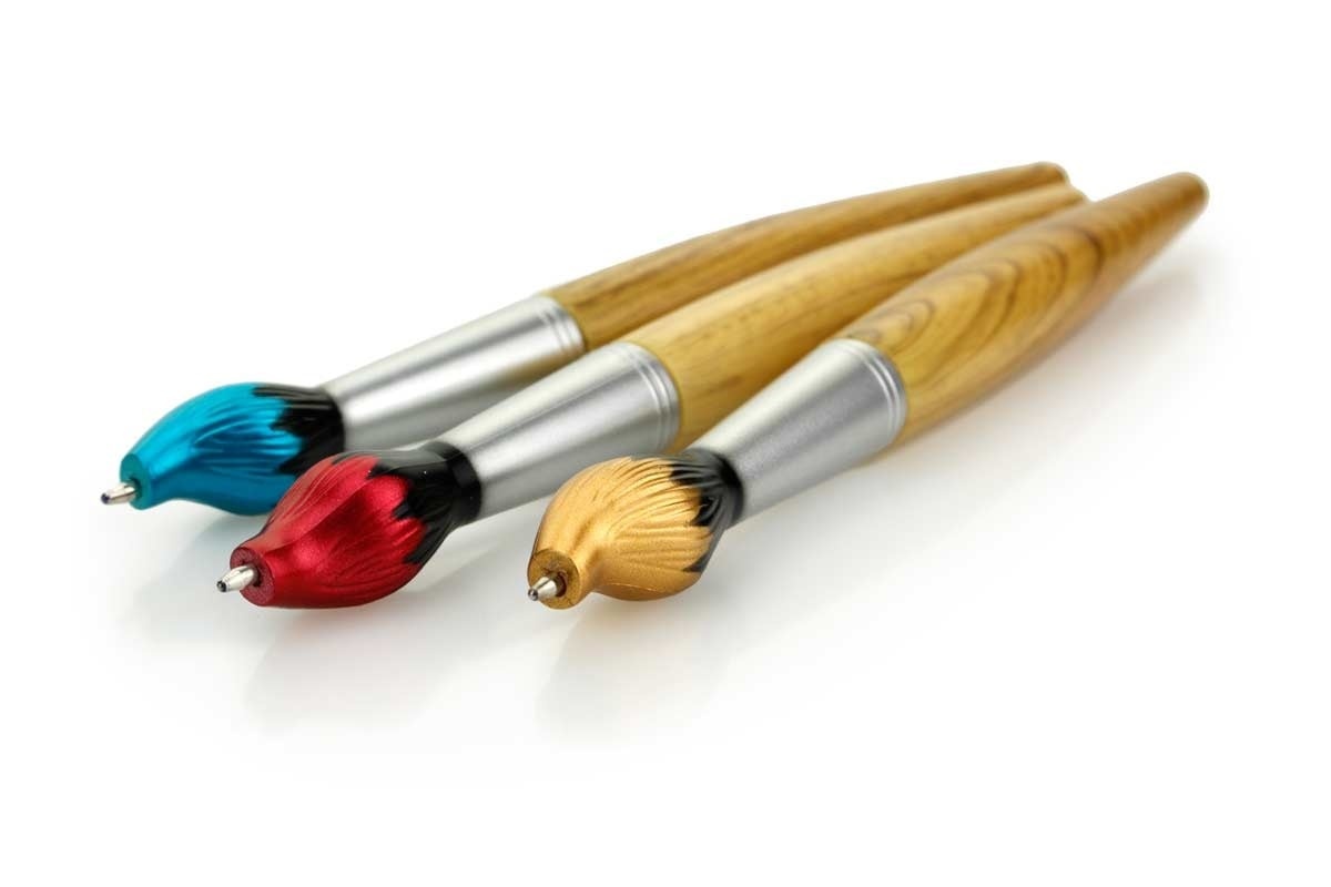 A brush pen, looks like a brush but is a ballpoint pen. The stylus of the ballpoint pen appears by turning the brush part. This beautiful brush ballpoint pen has a blue writing color and a matching blue tip.