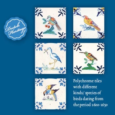 Card Wallet, Square, Delft Blue Tiles, Birds