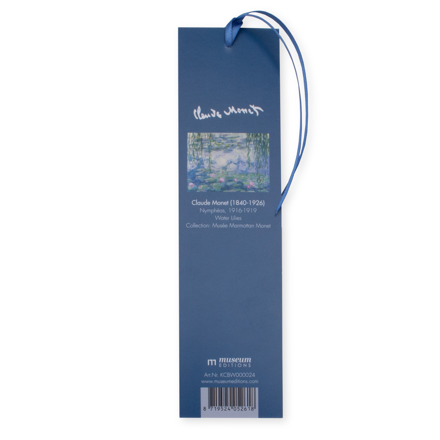 Classical Bookmark, Claude Monet, Water Lilies, with ribbon