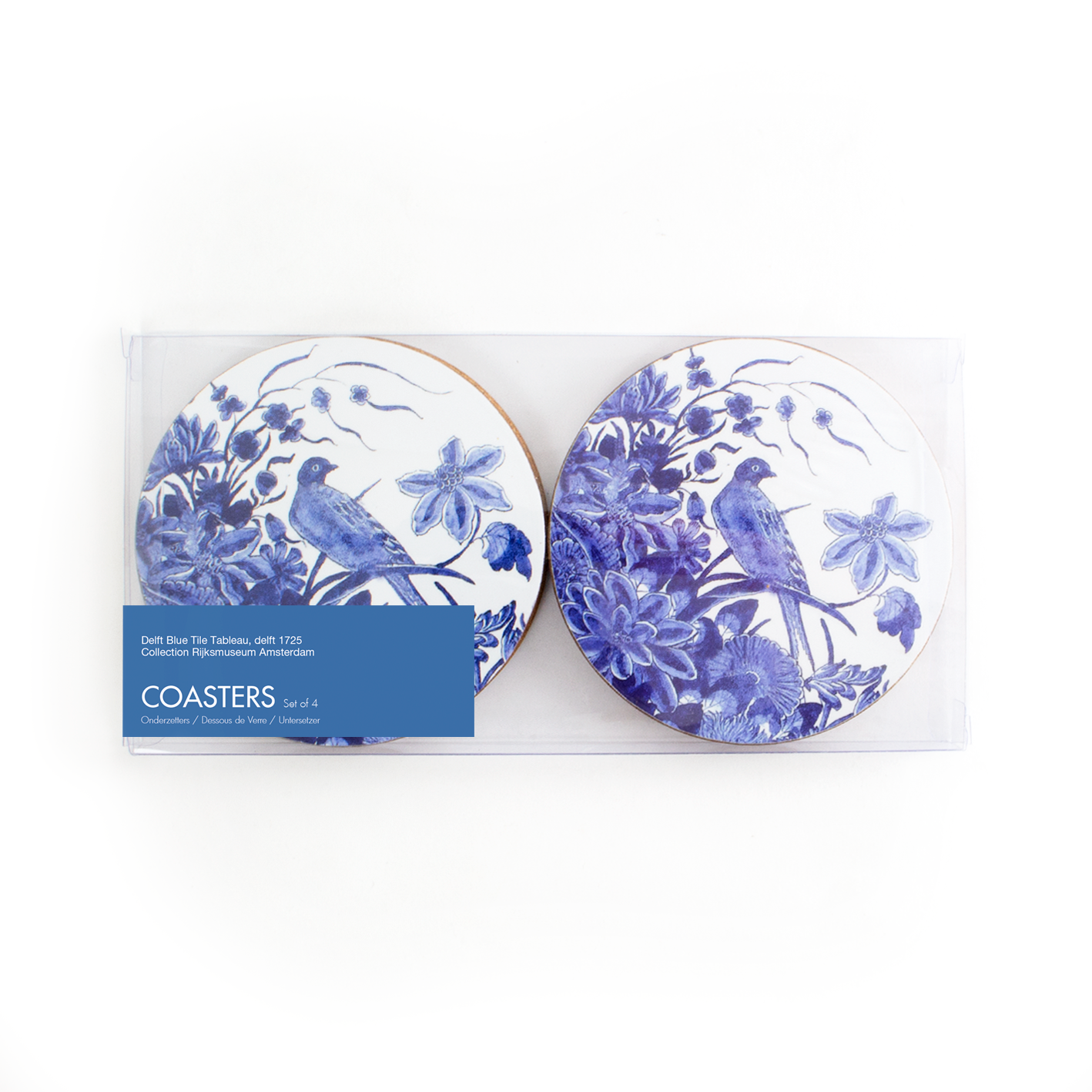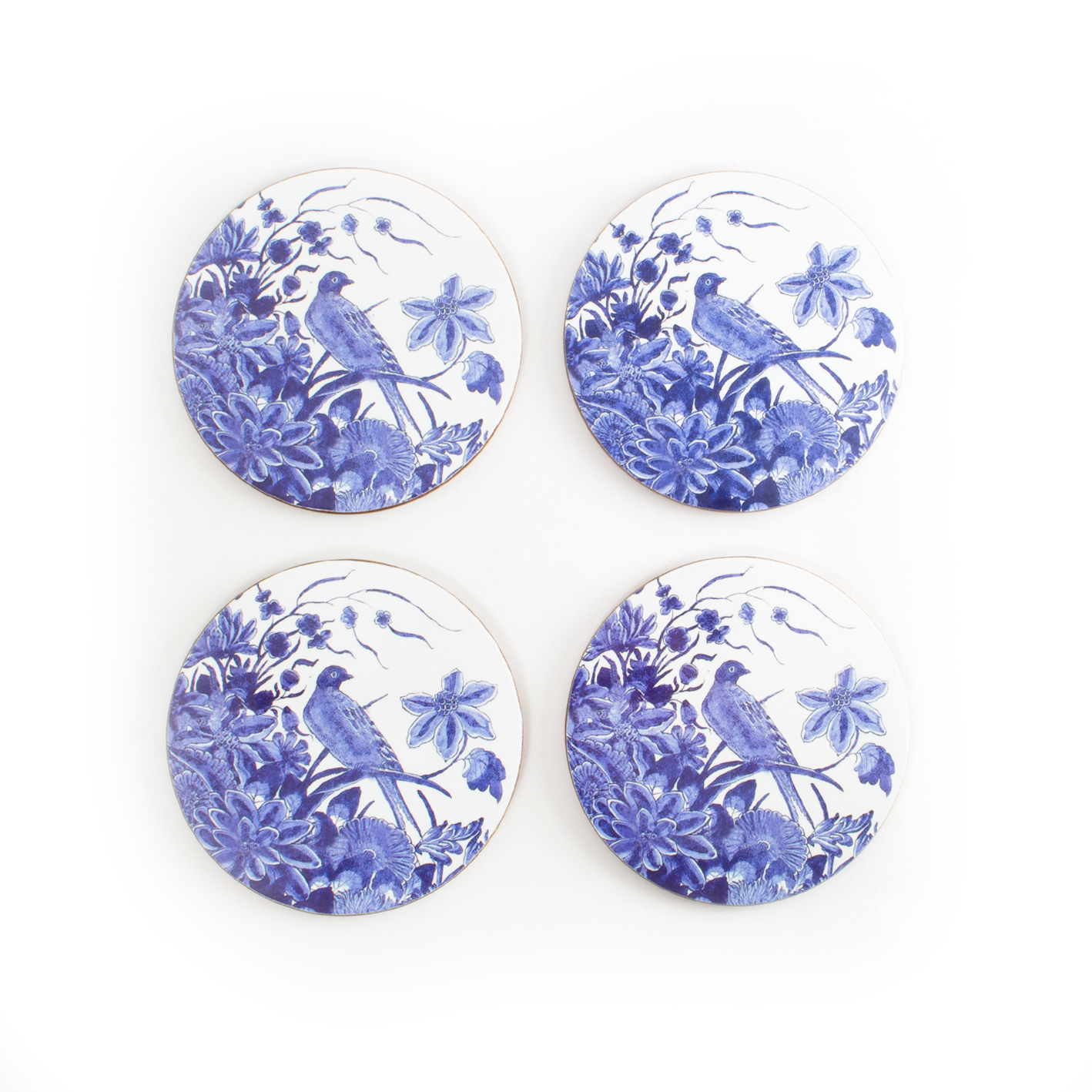 Set of 4 round coasters , Delft blue Bird, Rijksmuseum