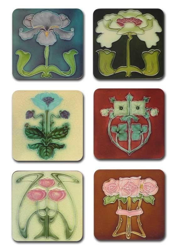 Coasters W, Art Nouveau FlowerTiles from the 1900-1910
