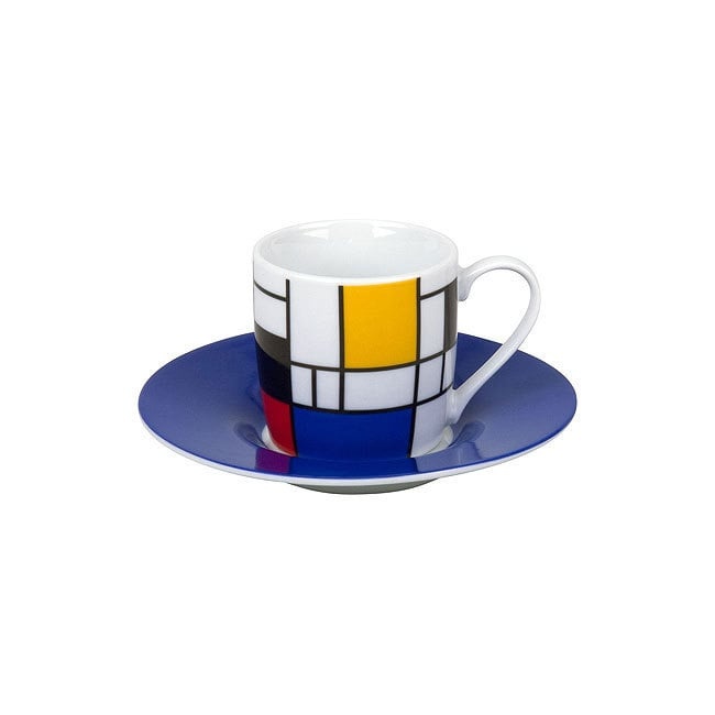 Espresso cup and saucer Mondrian blue