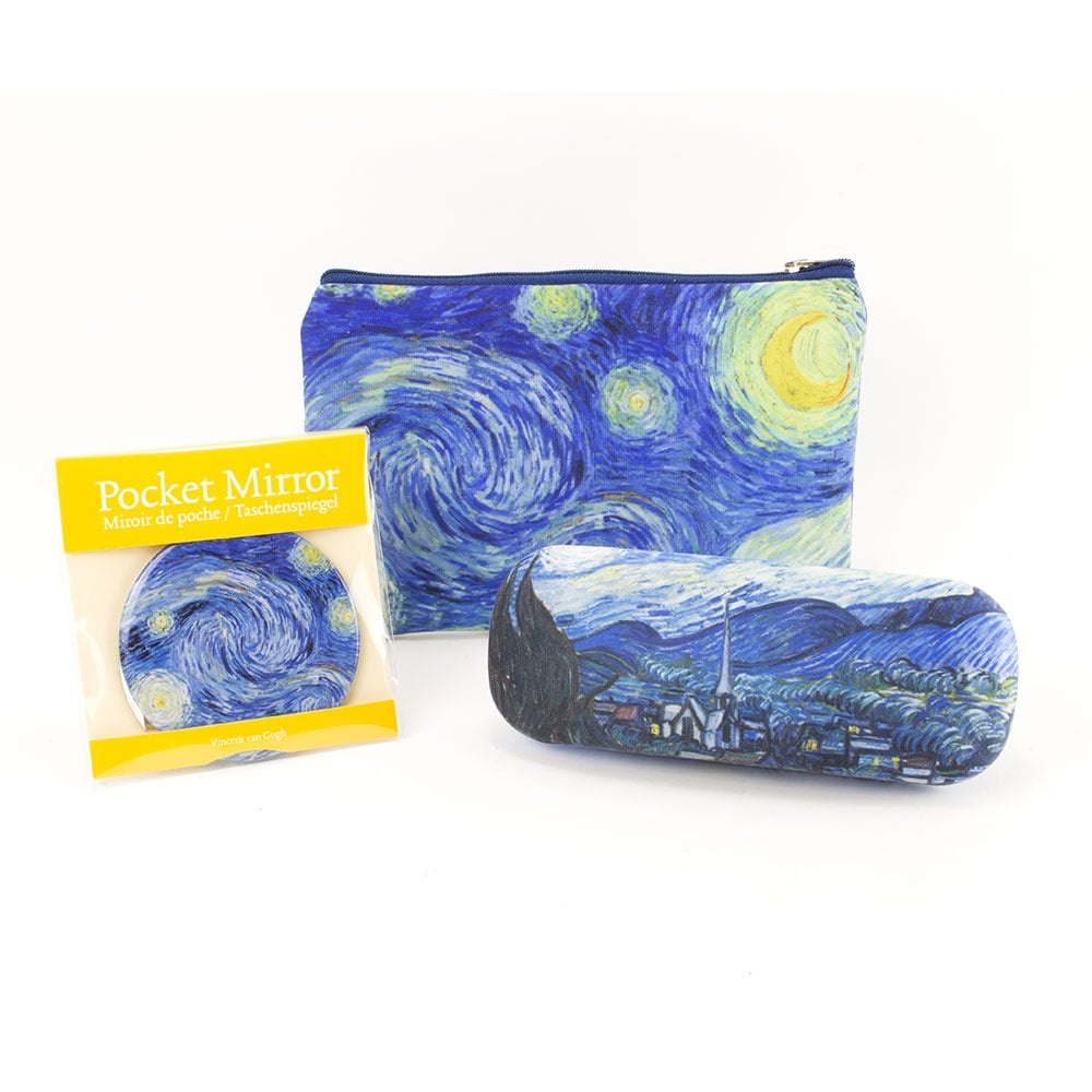This Vincent van Gogh gift set contains the following radiant museum gifts: A glasses case, a make-up bag and a pocket mirror. A nice museum shop gift for the holidays or for a birthday. Always nice to receive!