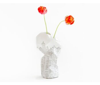 The folding vase has a modern and stylish look and fits into any interior. We sell the Paper Vase in various designs with a museum touch, such as The Milkmaid by Johannes Vermeer or Almond Blossom by Vincent van Gogh. For a slightly quieter and modern look we also have the vase with Amsterdam canal houses printed.
