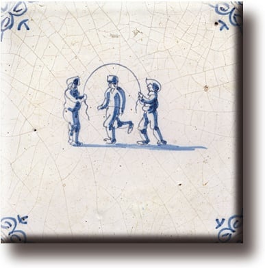 Fridge magnet, Delft blue tile, Children's games, jumping rope