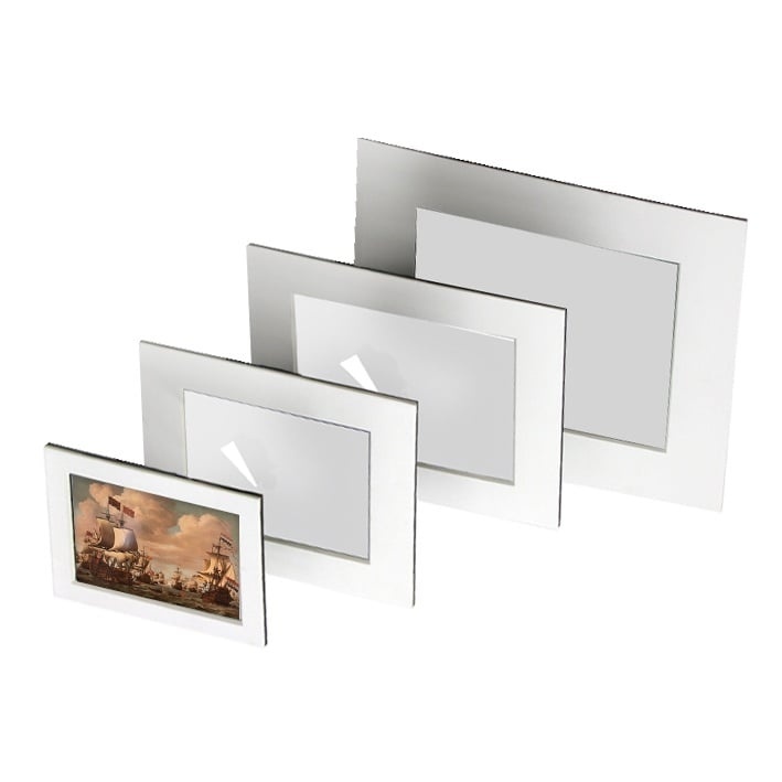 Ships meeting at sea, Willem van de Velde. Matted print, small: Size: 4178 x 127 x 4 mm, View size picture: 140 x 90 mm, insert size picture: 150 x 104 mmMaterial: Front board: Crystal white matt board. Backing board and stand: Black Kraft.