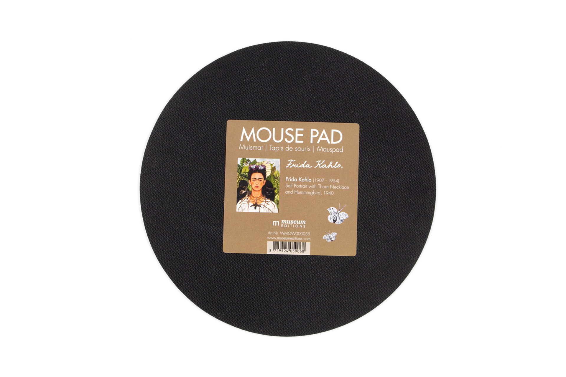 Mouse Pad round , Frida Kahlo, Portrait with Hummingbird