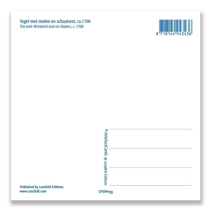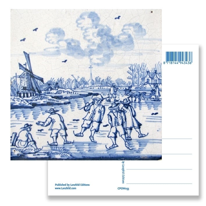 Postcard, Delftblue Tile with Windmill and Ice Skaters