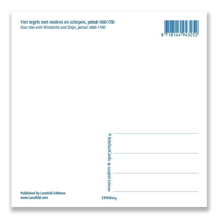 Postcard, Delft Blue Tiles Tableau: Windmills, Ships