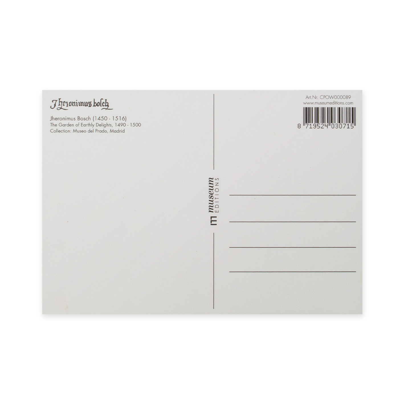 Postcard, 10x15 cm, Jheronimus Bosch, Garden of Earthly Delights 1