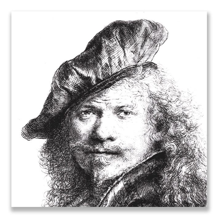 Postcard, Rembrandt, Self portrait with beret, Etch, 1639