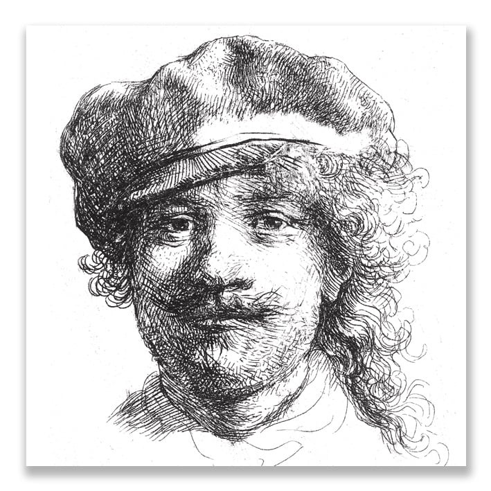 Postcard Rembrandt, Self portrait with hat, Etch,1634