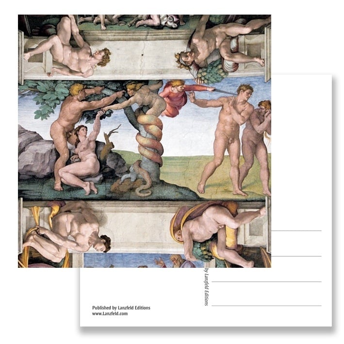 Postcard, Sistine chapel, Adam and Eve, MichealAngelo