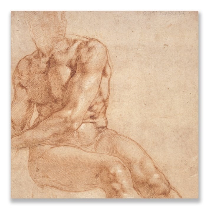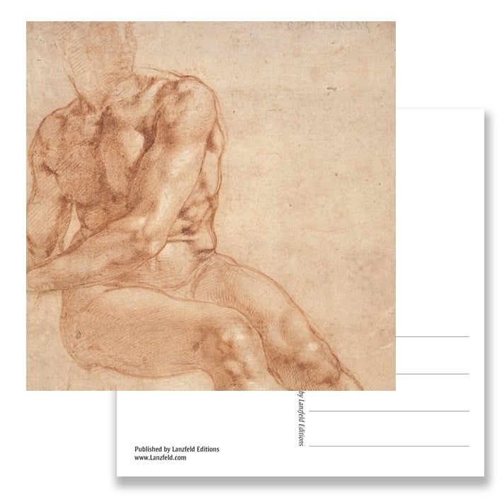 Postcard, Study of a Seated Young man and.., Michelangelo