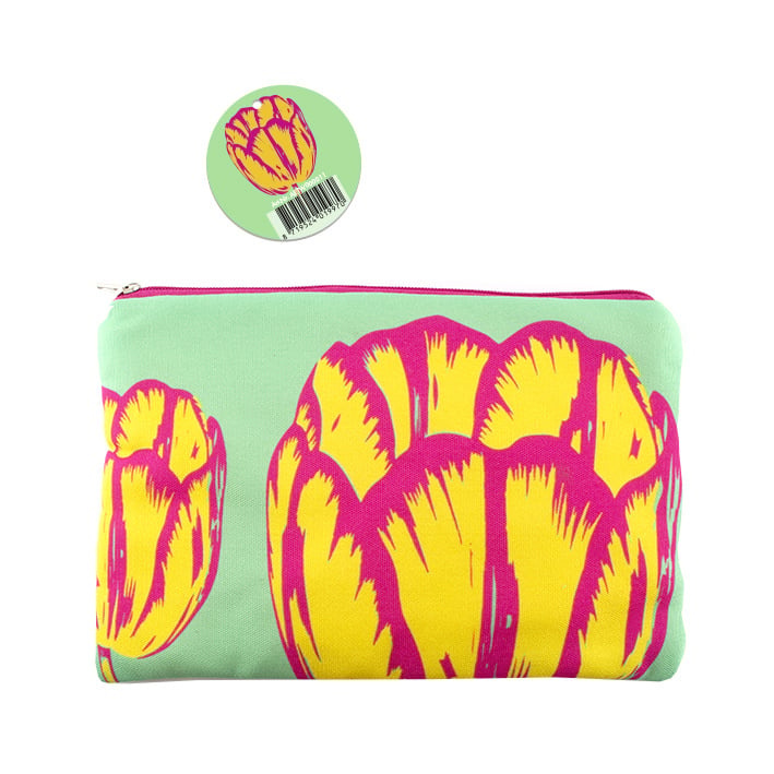 A beautiful and hip make-up bag that you can also use as a pencil case, toiletry bag or travel bag, or as a handbag organizer. The bag is lined, has a zipper and has a beautiful print of Pop-art tulip